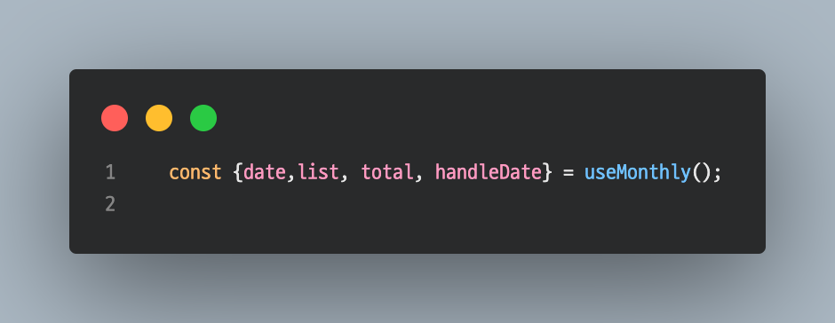 MonthlyList와 MonthlyTotal은 Component내에 useMonthly만 호출하여 사용하고 View만 신경 쓸 수 있게 됩니다.